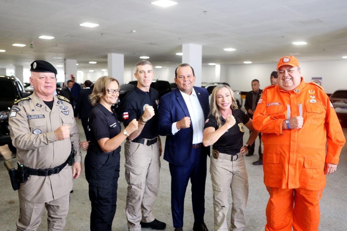 O secretário de Administração Penitenciária e Ressocialização do Estado da Bahia (Seap), José Castro, os comandantes-gerais da Polícia Militar e do Corpo de Bombeiros, coronéis Paulo Coutinho e Adson Marchesini, respectivamente, além da delegada-geral da Polícia Civil, Heloísa Brito, e a diretora-geral do Departamento de Polícia Técnica, Ana Cecília Bandeira.