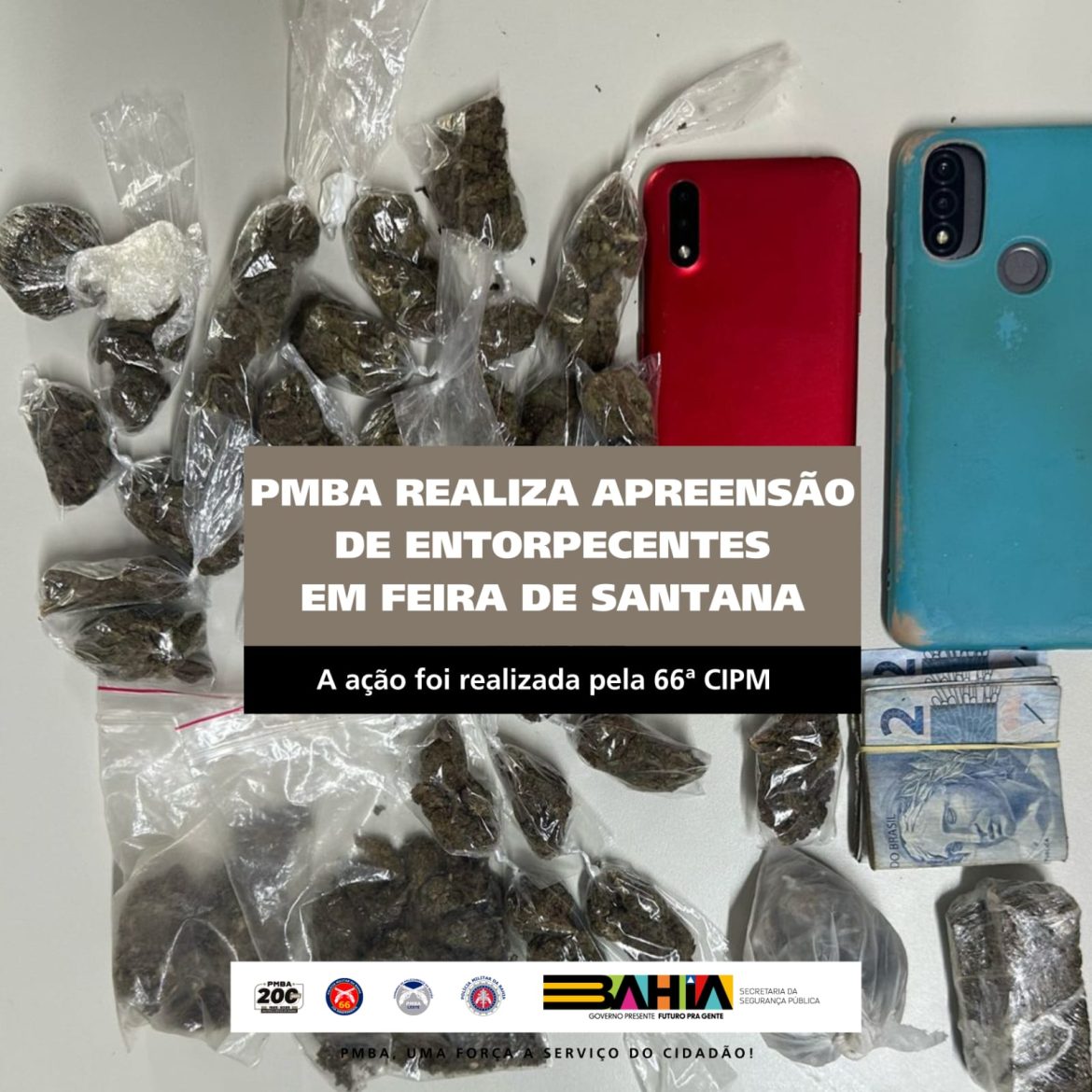 Policiais militares da 66ª CIPM realizaram a apreensão de entorpecentes nesta sexta-feira (21/02), na rua Lajedo, bairro Conceição em Feira de Santana.