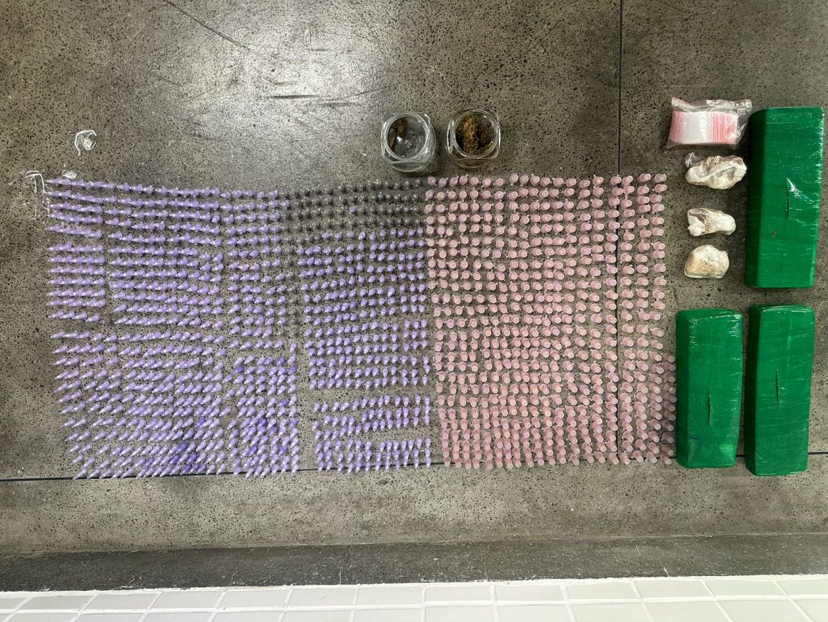Em rondas pelo bairro Rocinha, a Guarnição recebeu uma denúncia de Tráfico de Drogas na Rua Ayrton Senna. No local, os Policiais Militares encontraram um homem em posse de uma grande quantidade de entorpecentes. Entre eles: 02 volumes de substância análoga à maconha in natura dentro de embalagem de vidro; 838 pinos de substância análoga à cocaína; 505 pinos de substância análoga ao crack; 03 tablets de substância análoga à maconha; 03 pedras grandes de substância análoga ao crack e embalagens.