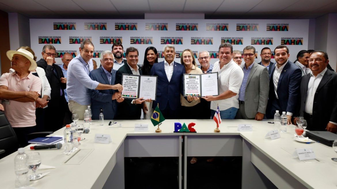 A assinatura das licitações reflete o compromisso do Governo do Estado em garantir a expansão da infraestrutura de saneamento e abastecimento, conforme os objetivos do PAC. A previsão é que os projetos irão beneficiar mais de 35 mil pessoas, promovendo saúde, qualidade de vida e desenvolvimento sustentável para as comunidades. O prazo é que as obras sejam executadas entre sete e 12 meses. De acordo com a secretária de Infraestrutura Hídrica, Larissa Moraes, “uma agenda incrível, que eu chego a me arrepiar em falar, porque é a primeira vez que a gente está dando esse grande salto. É o primeiro projeto do PAC relacionado à água a ser aprovado junto com o nosso presidente Lula. Então é uma felicidade muito grande, não só para mim e para o nosso governador Jerônimo Rodrigues, mas também para todos os baianos e baianas que vão ser beneficiados. E a gente está aqui para isso, para lutar e realizar o sonho de cada baiano e de cada baiana”. Na ocasião Jerônimo ainda acrescentou que sete municípios terão a publicação das licitações nesta terça-feira e dois no máximo na próxima sexta-feira (21).