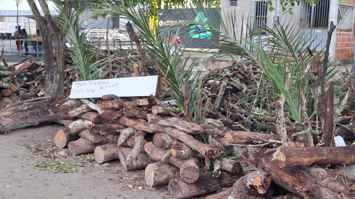 Zeca relata que a madeira utilizada na fabricação das fogueiras vem de pessoas que trabalham com motosserra em áreas destinadas à construção. Essas pessoas recebem a madeira como pagamento e a revendem para os comerciantes.
