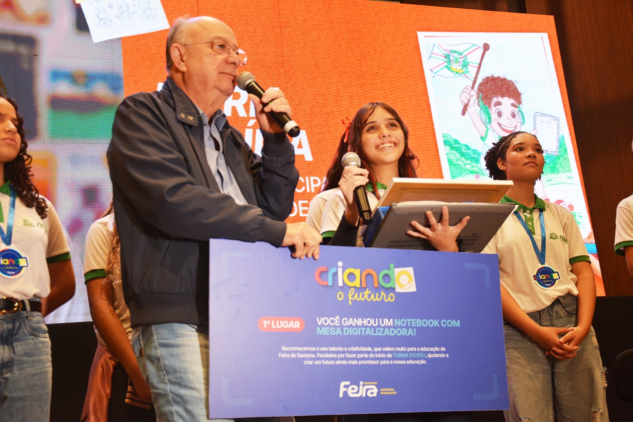 A estudante Maria Cecília, 13 anos, da Escola Municipal Eduardo Fróes da Mota, venceu o concurso de desenho para criação do Edu, o mascote da Educação 2025 da rede municipal de ensino de Feira de Santana. A criação dela foi escolhida por um corpo de jurados na tarde desta quarta-feira (16), no auditório da Secretaria Municipal de Educação, e recebeu premiação das mãos do prefeito José Ronaldo.