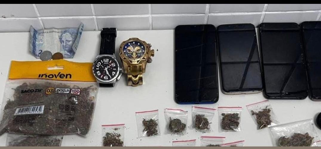 Ao realizar o acompanhamento, o homem foi alcançado e durante a abordagem foi encontrado no interior do veículo 05 trouxas grandes de substância análoga à maconha, 27 papelotes de substância análoga à maconha, 08 papelotes de substância análoga à cocaína, além de quatro aparelhos celulares, cartões e relógios, por esse motivo foi dado voz de prisão ao homem que estava de posse do material.