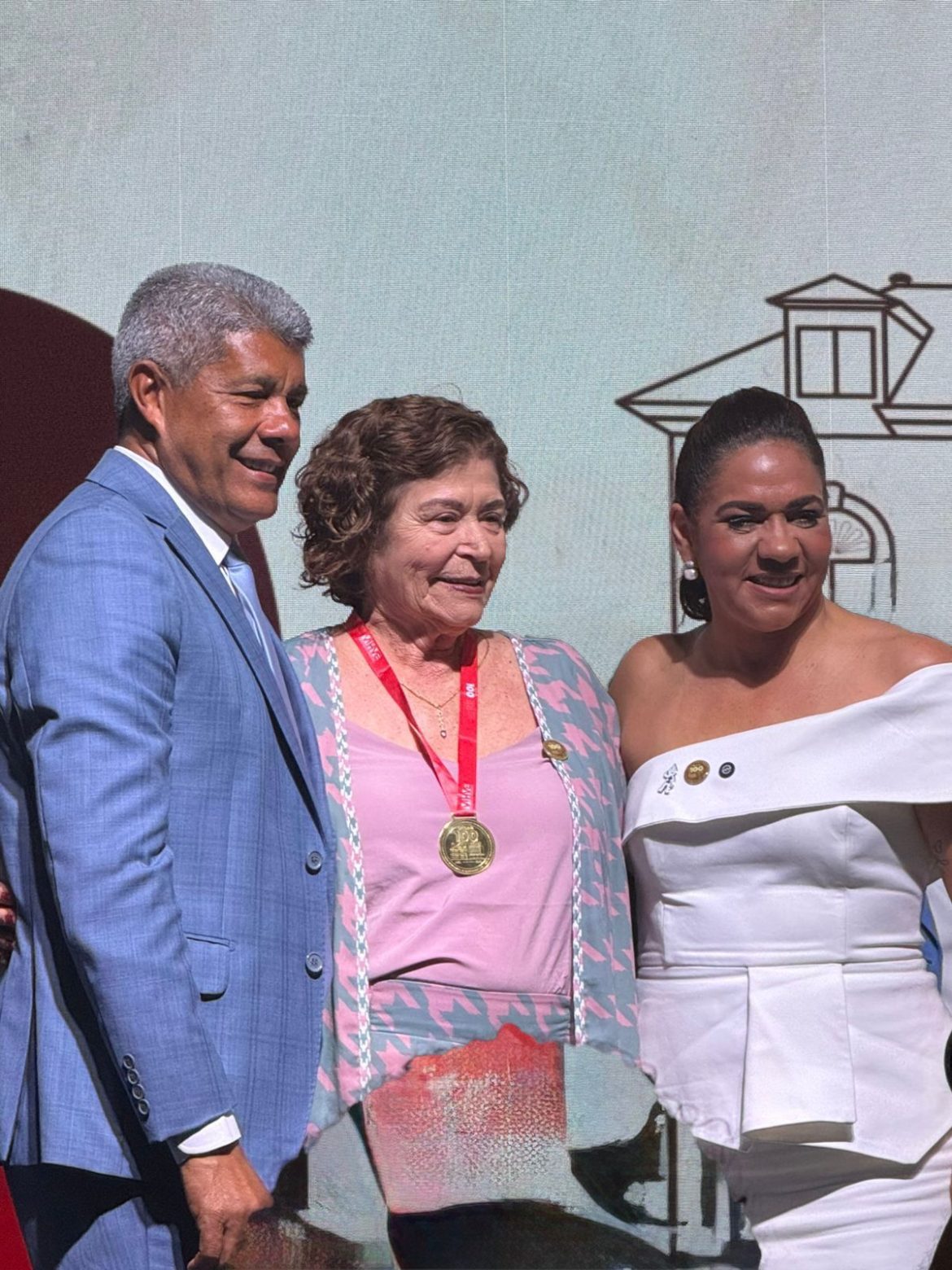 “Destes 100 anos da SESAB, pude fazer parte, diretamente, de mais da metade. Como costumo brincar, são 50 anos, mais um – 51”, ressaltou a diretora. Ela recebeu a medalha das mãos do governador Jerônimo Rodrigues e da secretária de Saúde, Roberta Santana.