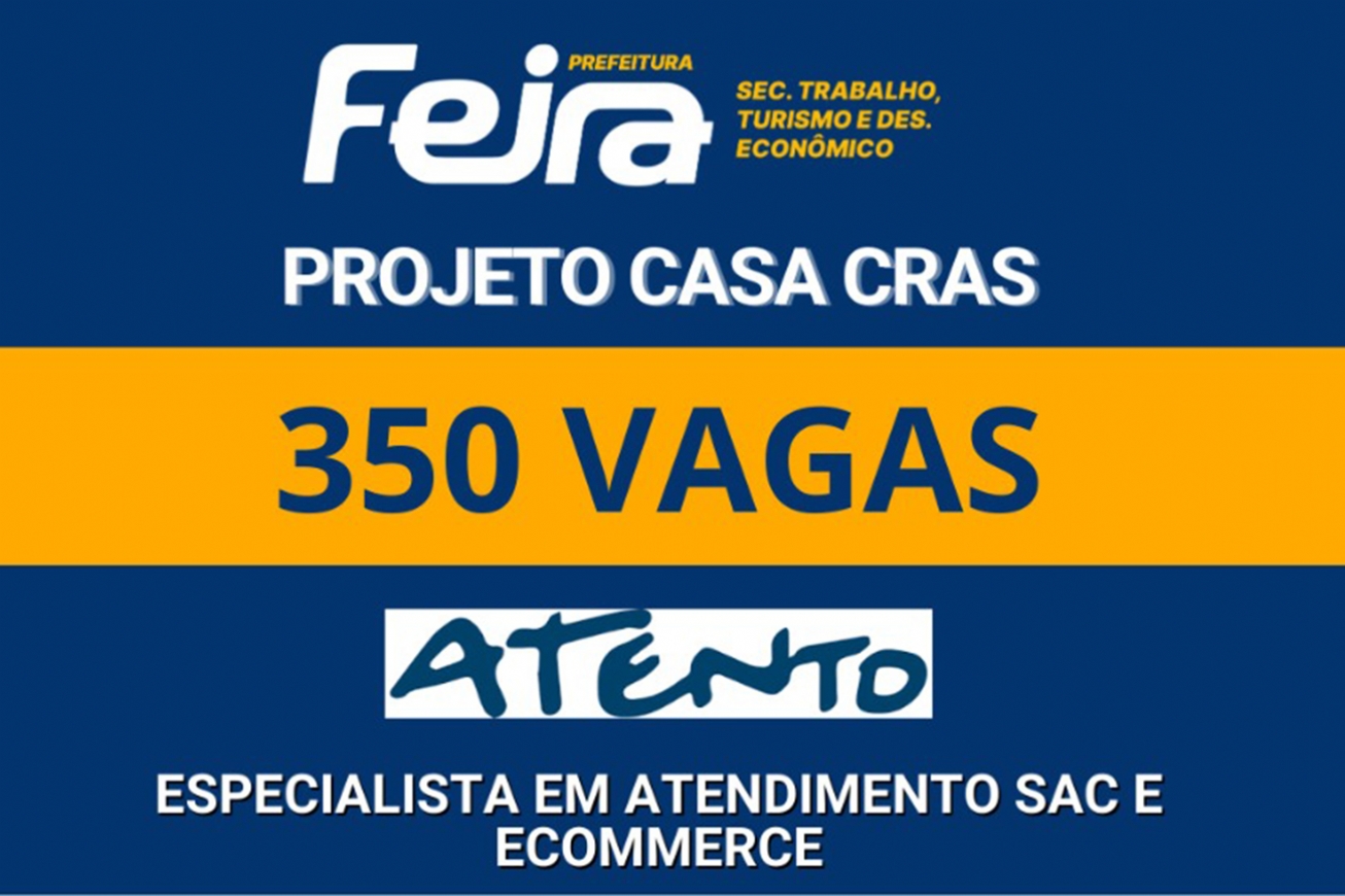 A Casa do Trabalhador, órgão vinculado à Secretaria de Trabalho, Turismo e Desenvolvimento Econômico (Settdec), anunciou nesta terça-feira (20) a abertura de 350 vagas de emprego na área de atendimento em call center, fruto de uma parceria entre a Atento, com o apoio da Unifacs e a Secretaria de Desenvolvimento Social (Sedeso). A ação integra o projeto Casa Cras e contará com seleção imediata.
