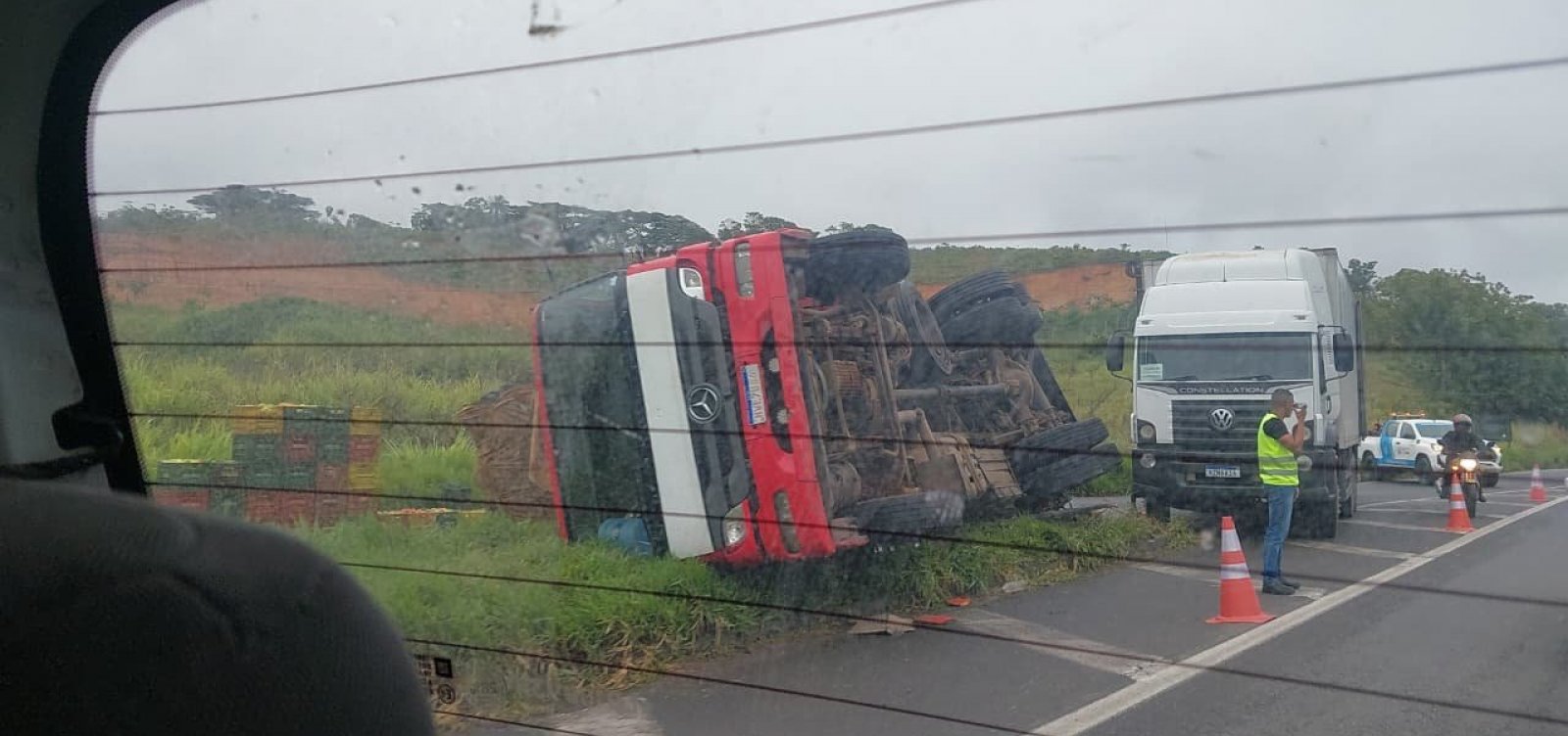 Segundo o relato, o tombamento provocou congestionamento de aproximadamente 2 km. Apesar do susto, ainda não há informações confirmadas sobre feridos ou sobre o estado do motorista. Outro acidente envolvendo um caminhão e um carro também teria ocorrido logo à frente.