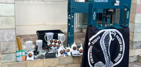 No imóvel, os policiais encontraram um laboratório de produção e refino de cocaína. Também foram apreendidas duas prensas hidráulicas, duas pistolas semiautomáticas, porções da droga, material para mistura, insumos químicos, além de dois veículos de luxo.