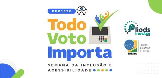 O Tribunal Regional Eleitoral da Bahia (TRE-BA), por meio do Laboratório de Inovação (LIODS INOVAXÉ), realiza de 17 a 26 de setembro a campanha Todo Voto Importa em instituições de Salvador que atendem pessoas com deficiência, mobilidade reduzida e/ou em situação de vulnerabilidade social. O projeto integra a Semana de Acessibilidade e Inclusão, promovida anualmente pelo Regional, e tem a finalidade de fortalecer as políticas de inclusão e garantir a equidade da participação de todas as pessoas aptas nas eleições.