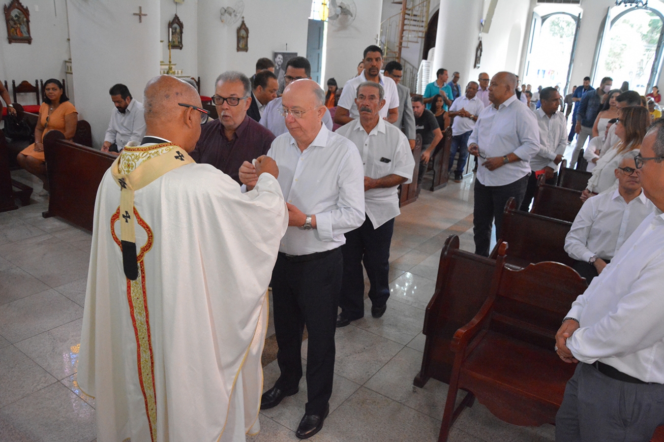O prefeito José Ronaldo de Carvalho participou da missa e ressaltou a grandeza do município ao longo de sua história.