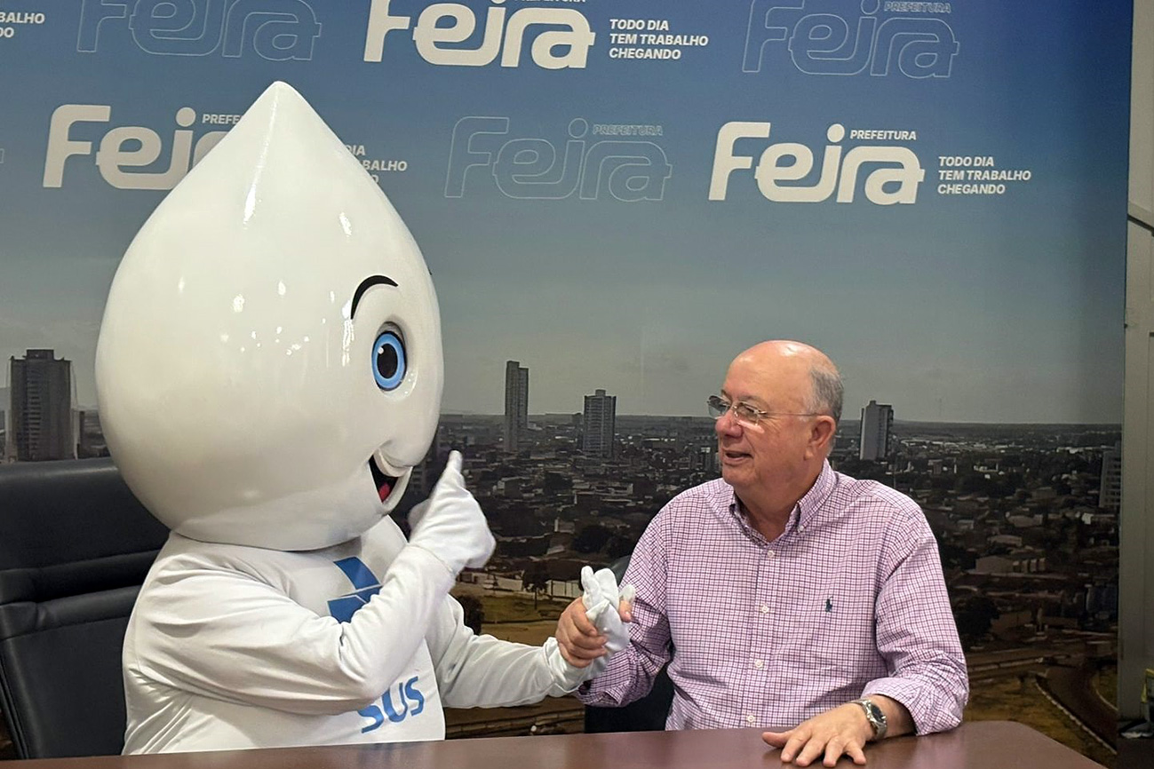Em clima de festa pelos 192 anos de Feira de Santana, o mascote Zé Gotinha ganhou as ruas para reforçar a importância da vacinação.
