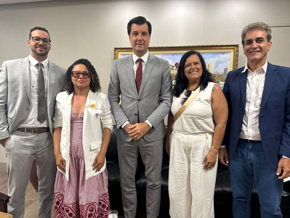 O deputado estadual Robinson Almeida (PT) esteve em audiência, nesta quinta-feira (17), na sede do Ministério Público da Bahia (MP-BA), em Salvador, com o procurador-geral de Justiça, Pedro Maia, e Maximiliano Ataíde, Jussara Pinho e Larissa Carvalho, representantes da APLB-Sindicato, para tratar das denúncias de descumprimento da Lei Federal nº 11.738/2008 pela Prefeitura de Feira de Santana.