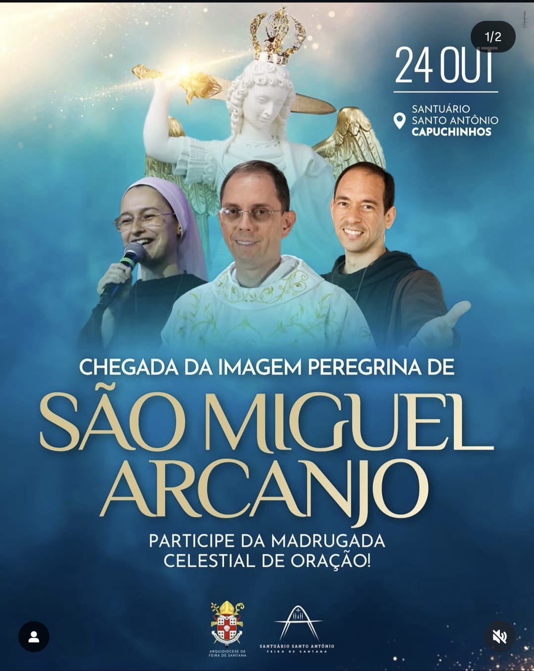 Feira de Santana se prepara para viver uma noite e madrugada de intensa espiritualidade e devoção com a chegada da Imagem Peregrina de São Miguel Arcanjo, nesta quinta-feira, 24 de outubro, no Santuário Santo Antônio – Capuchinhos. O evento contará com a presença do Instituto Hesed, e promete reunir fiéis de toda a região em um grande momento de fé e adoração.