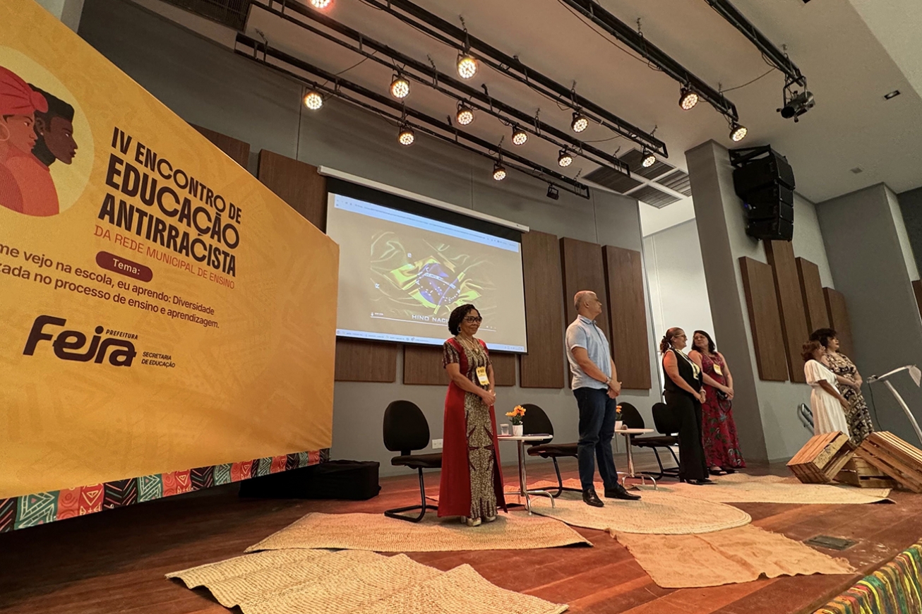 A Secretaria Municipal de Educação de Feira de Santana realizou, na noite desta terça-feira (4), a abertura oficial do IV Encontro de Educação Antirracista da Rede Pública Municipal, que este ano traz como tema “Eu me vejo na escola, eu aprendo: diversidade valorizada no processo de ensino e aprendizagem”.