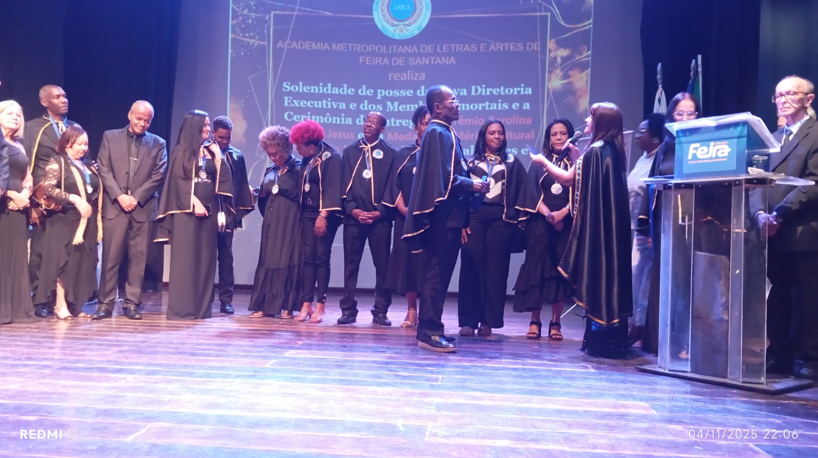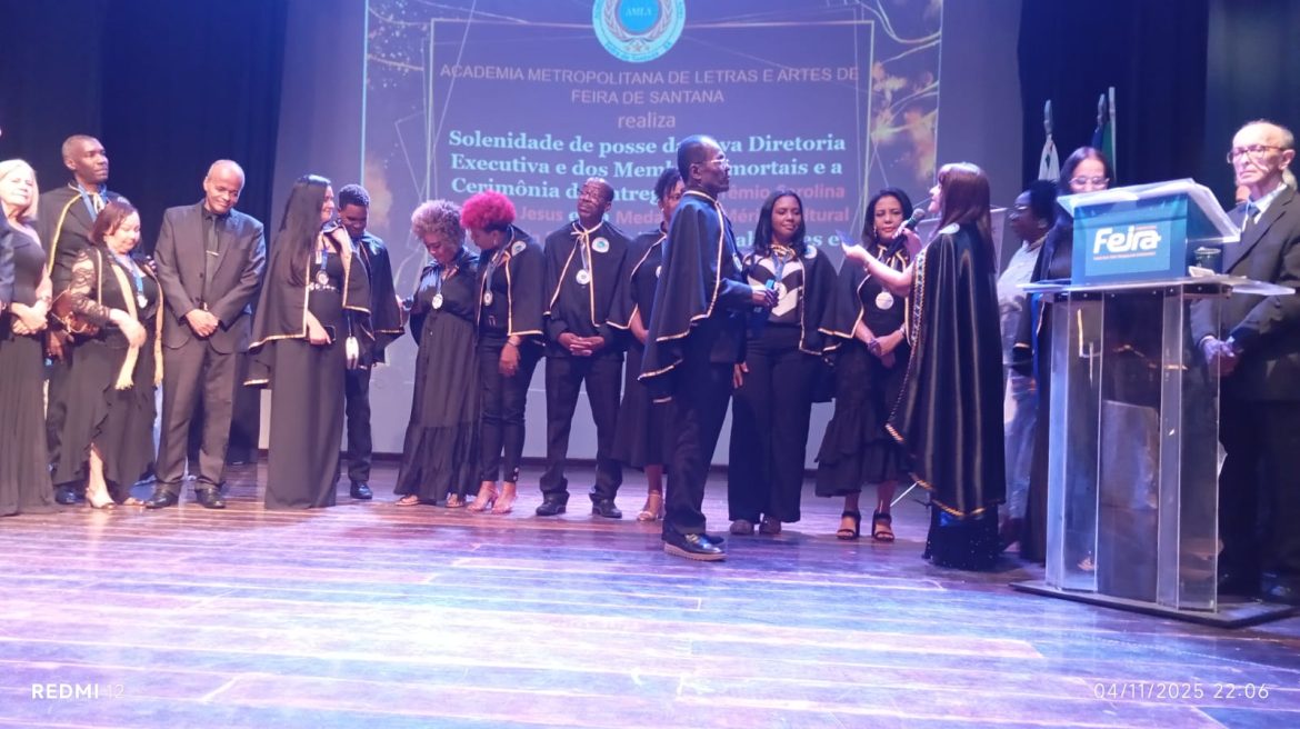 A Academia Metropolitana de Letras e Artes de Feira de Santana (AMLA) realizou, na noite de 4 de novembro de 2025, uma sessão solene de grande relevância no Teatro Municipal Margarida Ribeiro. O evento marcou a posse da nova diretoria para o quadriênio 2025–2029, a recepção de novos membros e a celebração do aniversário de fundação da instituição, criada em 5 de novembro de 2021.