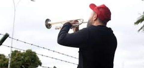 Logo cedo, o músico Fabiano Trompetista foi ao local para tocar a marcha fúnebre, em alusão à prisão de Bolsonaro.