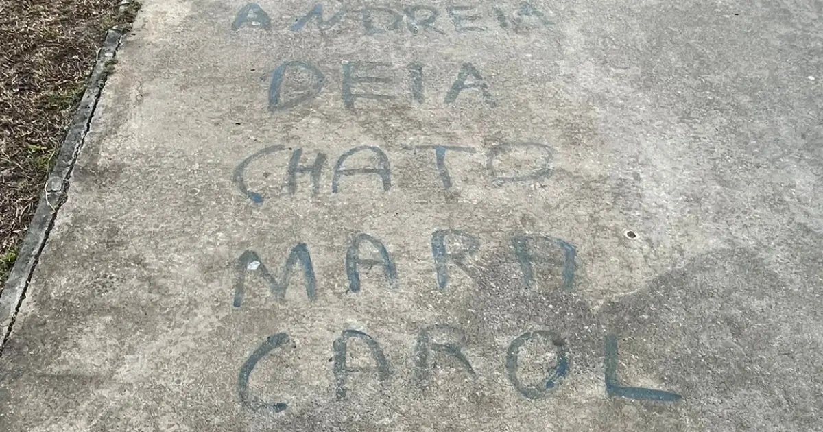 Na gravação ainda é possível ver, algumas iniciais, apelidos, nomes ou palavras que indicam o serviço que ficará naquele espaço demarcado. As marcas estão entre o Jardim de Alah, Parque dos Ventos e as quadras poliesportivas da Orla da Boca do Rio.