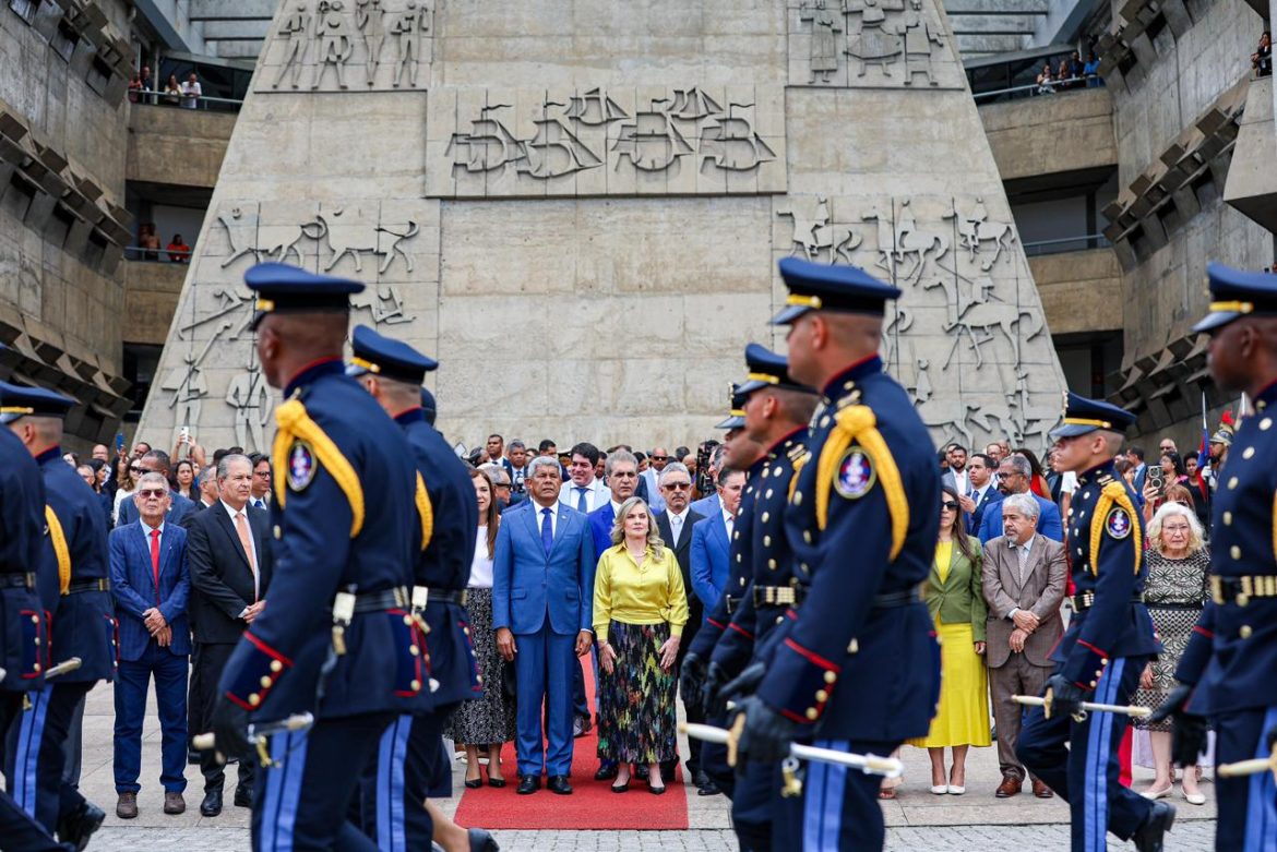 Antes de recepcionar o governador Jerônimo Rodrigues, pontualmente às 9:30h a presidente Ivana Bastos desceu a rampa do Palácio deputado Luís Eduardo Magalhães e ouviu o toque de saudação da tropa. Cumprindo o ritual de revista da guarda de honra, em menos de dois minutos, a deputada fez, mais uma vez, história no Parlamento da Bahia.