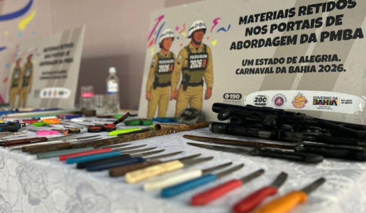 O trabalho preventivo realizado pela Polícia Militar da Bahia nos 53 portais de acesso resultou na retenção de 6.699 objetos não permitidos nos três circuitos oficias do carnaval em Salvador. O dado foi apresentado no Quartel do Comando Geral da PMBA durante a reunião de balanço do carnaval desta terça-feira (17), data em que se comemora 201 anos da corporação militar