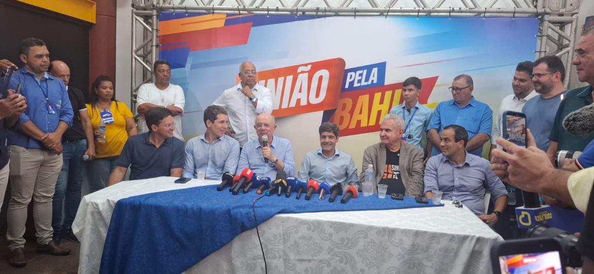 Na noite desta segunda-feira (30), o Teatro da CDL, em Feira de Santana, sediou o pré-lançamento da chapa de oposição ao governo da Bahia, reunindo líderes políticos e autoridades. ACM Neto foi confirmado como pré-candidato ao governo pelo União Brasil, com Zé Cocá como pré-candidato a vice-governador pelo PP. O evento contou ainda com a presença de Ângelo Coronel e João Roma.