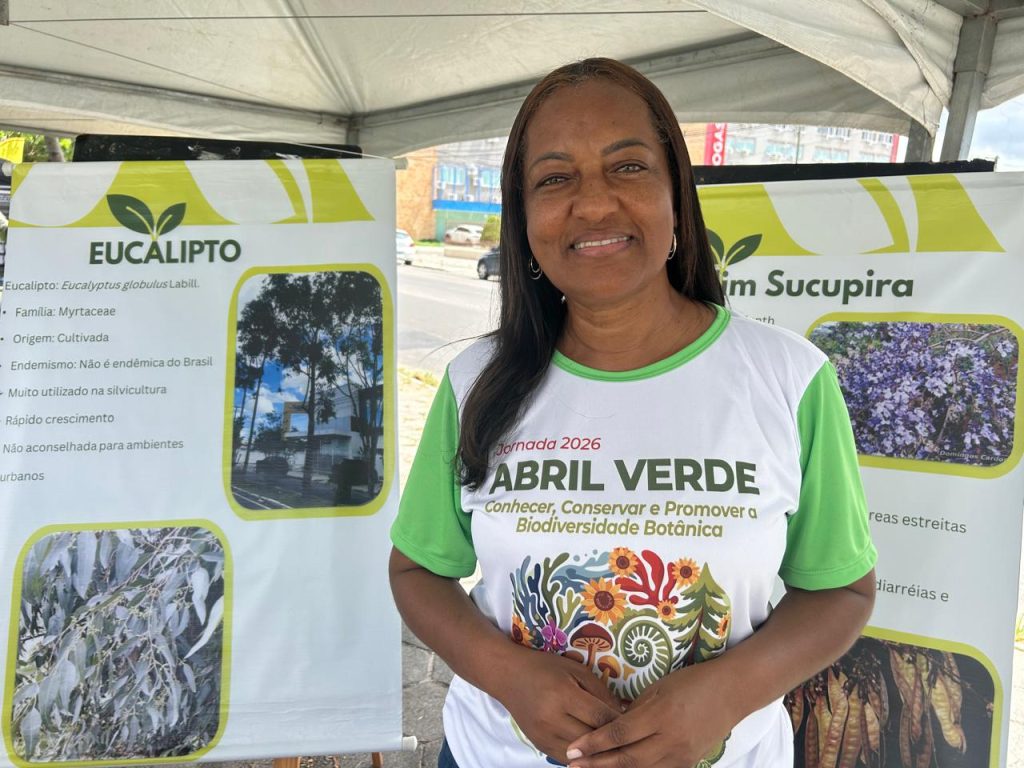 “A participação da população hoje pela manhã foi muito positiva. Realizamos também a doação de mudas de plantas, buscando promover a integração da comunidade com o meio ambiente. Acreditamos que somos parte do meio ambiente e, por isso, é fundamental que vivenciemos essa relação, cuidando, conservando e promovendo a biodiversidade. Em relação às mudas distribuídas, os visitantes da feira, ao interagirem com nosso estande e conhecerem os bairros de Feira de Santana que homenageiam árvores, recebem uma muda de brinde, podendo escolher entre as espécies disponíveis. Hoje, distribuímos mudas de ipê-roxo, ipê-amarelo e ipê-rosa, com grande aceitação do público. A participação foi muito gratificante, e as pessoas demonstraram muito interesse.”